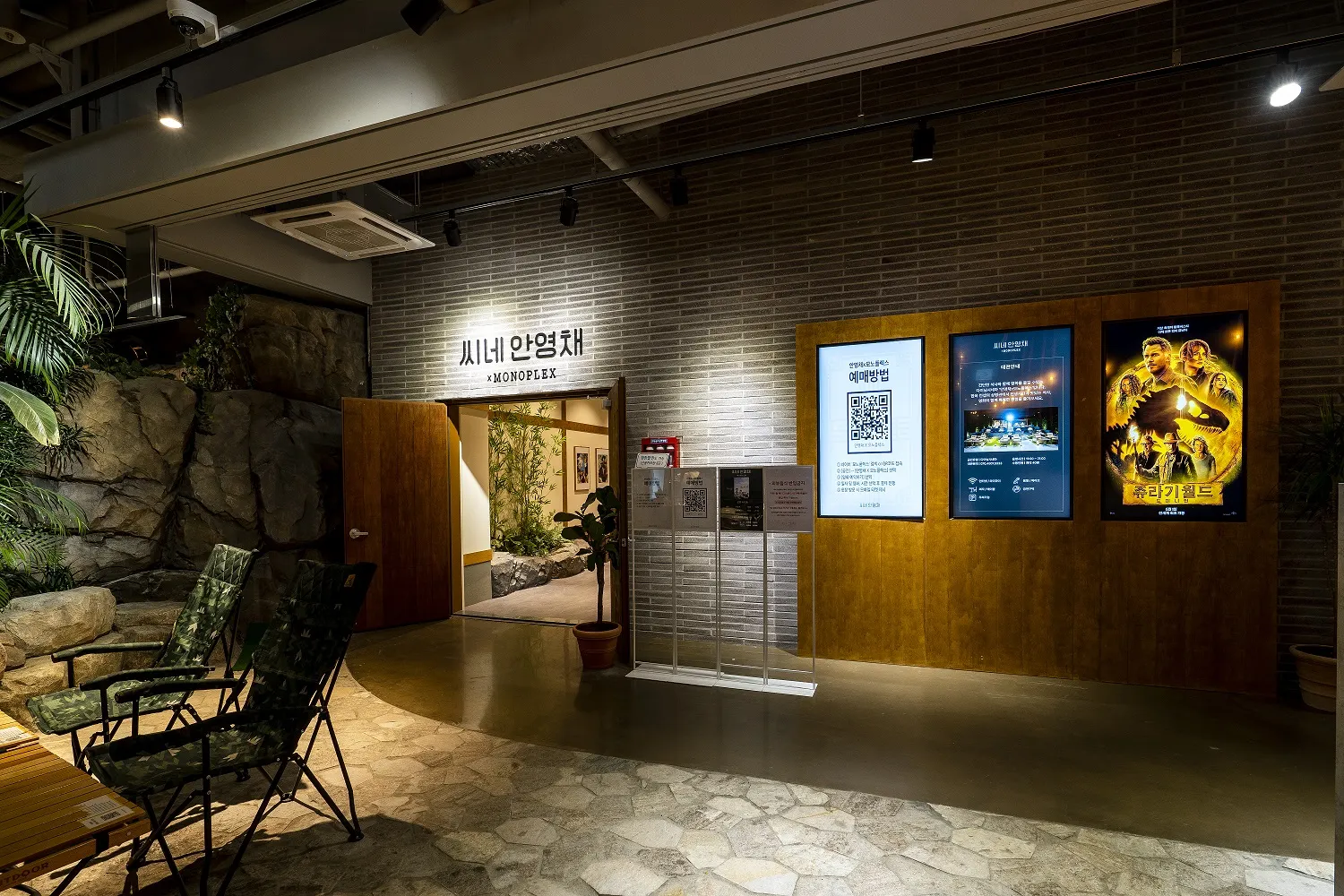 3. 라크몽 지하 1층 푸드코트에서 판매하는 음식 반입이 가능한 영화관으로 의자와 테이블이 준비되어 있습니다.