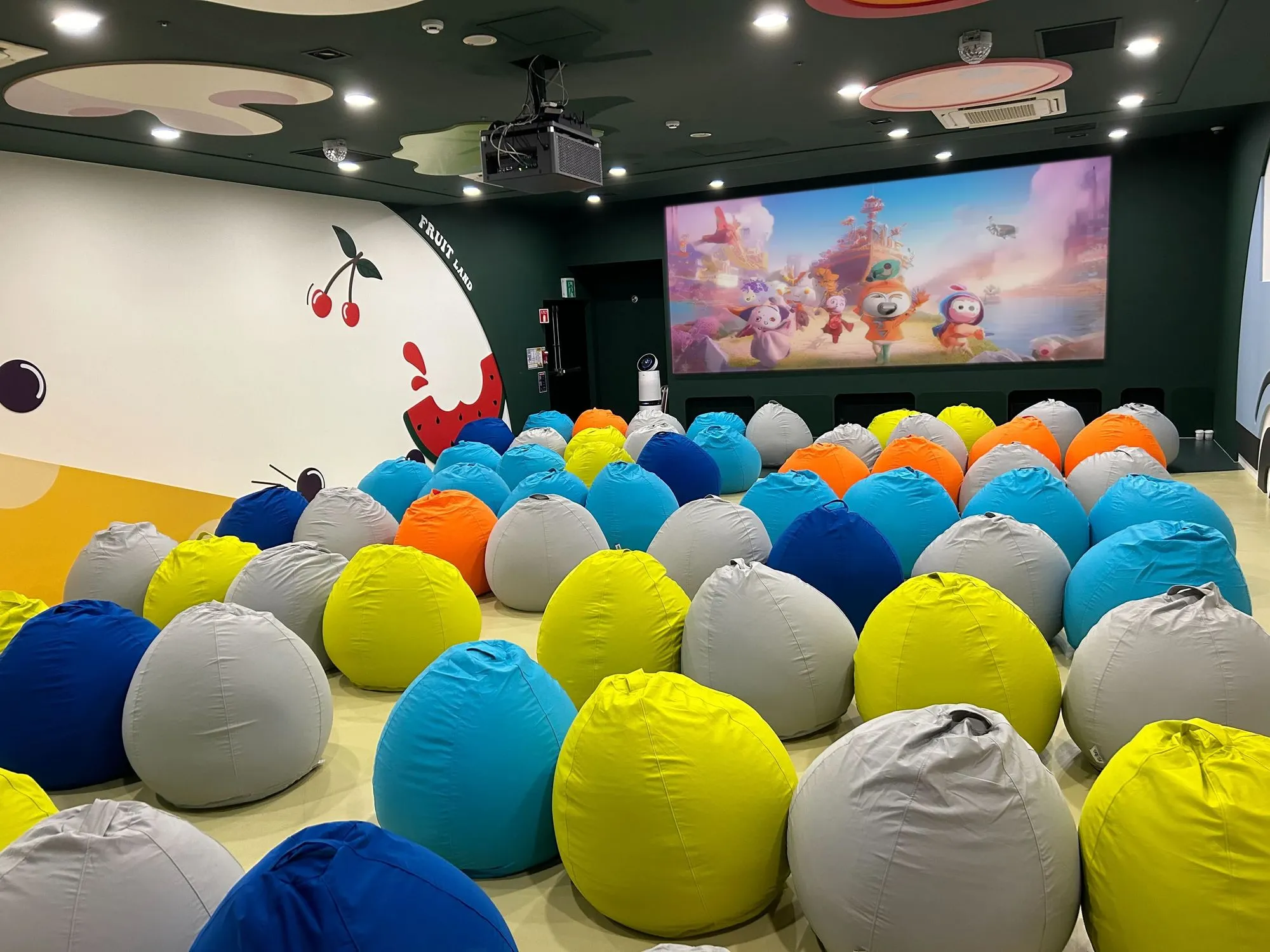 어린이 고객의 안전을 위해 영화 관람에 방해되지 않는 선에서 조명이 켜진 상태에서 영화가 상영됩니다.